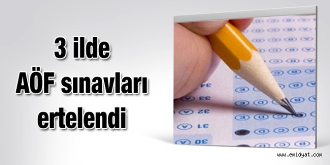 Eskişehir Anadolu Üniversitesi, 16-17 Nisan'da yapılacak olan Açık Öğretim Fakültesi (AÖF) sınavlarının Hakkari, Şırnak ve Mardin illerinde ileri bir tarihte yapılmak üzere ertelendiğini öğrencilere gönderdiği mesaj ile duyurdu.Söz konusu mesajda şu ifadelere yer verildi: "16-17 Nisan 2016 Bahar dönemi ara sınavı Hakkari, Mardin ve Şırnak illerinde ileri bir tarihe ertelenmiştir. Ek bilgi daha sonra verilecektir.”Hatırlanacağı üzere, 14 Mart tarihinden bu yana Mardin'in Nusaybin, Hakkari'nin Yüksekova ve Şırnak İl merkezinde sokağa çıkma yasağı devam ediyor.