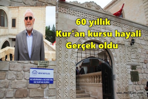 "Mahallemizin Kur'an kursu ihtiyacı vardı"Dede yadigârı konaklarının restorasyonunu yaklaşık 10 ayda tamamladıklarını bildiren Tural, şunları söyledi: "Çok şükür, açılışını yaptık. Mahallemizin Kur'an kursu ihtiyacı vardı. Bunu giderme adına, yatılı kız Kur'an kursu olarak hizmet verebilecek şekilde restore ettik. Soysal amaçlı olarak kullanılmak üzere Midyat İlçe Müftülüğümüze devrettik. Mahallenin hanımlarına da hizmet vermesi için tam teşekküllü bu kursun Midyat'ımıza, mahallelimize hayırlı olmasını diliyorum."Midyatlı hayırsever Abdurrahman Tural ise Türkiye'de Kur'an-ı Kerim okumanın yasaklandığı dönemlerde mağaralarda gizlice Kur'an öğrenmeye çalıştıklarını ve o günden beri böyle bir yeri açmanın hayali içinde olduğunu bildirdi."Dinimizi, kitabımızı öğrenmek için türlü sıkıntılar çektik"Geçmişte yaşadıkları zorlukları dile getiren Tural, "Benim böyle bir hayalim vardı. Çünkü ben mağarada gizli bir şekilde Kur'an okudum. Dinimizi, kitabımızı öğrenmek için türlü sıkıntılar çektik ancak rahmetli babamın desteğiyle bugünlere geldik. Çok zor şartlarda öğrendik. Şimdi her şey çok farklı. Bilgiye ulaşmak çok daha kolay. Çok şükür, çocuklarımın da desteğiyle 60 yıllık hayalim gerçekleşti. Rabbimden, bölgemize ve halkımıza örnek ve faydalı olmasını diliyorum. Bu görev sadece belirli kesimin değil. 'Dinim İslam, kitabım Kur'an.' diyen herkesin kıyamete kadar sürecek bu hayır kapısına destek olması gerekir." ifadelerini kullandı.