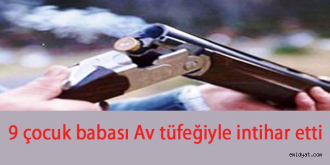 MARDİN -Olay Midyat'a bağlı Dolunay (Kefsange) köyünde meydana geldi. 45 yaşındaki 9 çocuk babası M.I., evinde av tüfeğiyle intihar etti.