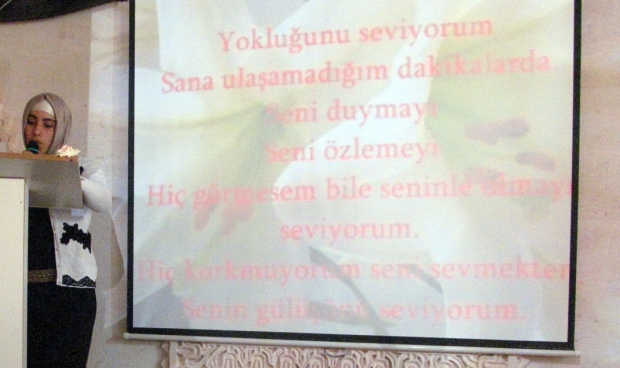 MİDYAT- Sunuculuğu yine Ayşe Başpınar’ın üstlendiği “Bir Demet Şiir” adı verilen programda 3’ü öğretmen 15’i öğrenci olmak üzere toplamda 18 şiir okundu. Belli bir temayla sınırlandırılmayan dinletide Türk edebiyatının usta şairlerinin çeşitli konulardaki şiirlerine yer verildi.Yavuz Bülent Bakiler, Nazım Hikmet Ran, Yahya Kemal Beyatlı, Yunus Emre, Karacaoğlan, Ümit Yaşar Oğuzcan, Attila İlhan, Ahmet Hamdi Tanpınar, Cahit Sıtkı Tarancı programda şiirleri yer alan şairlerden bazıları. Soma’da 13 Mayıs’ta gerçekleşen maden kazasında hayatını kaybedenlere ithafen yazdığı şiirle 9. Sınıf öğrenci Muhammed Ali Dindar programın ilk şiirini okuyarak duyarlılığı ile dikkat çekti. Şiiri bitirdiğinde salondan büyük alkış aldı.Program izleyicilerin ilgi ve beğenisini kazandı.