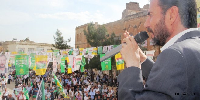 Kılınç, aralarında HÜDA PAR Mardin İl Başkanı Şehmus Akman ve ilçe başkanı İsa Altunkaynak'ın da bulunduğu kalabalık bir grupla şehir turu attıktan sonra miting alanına geldi.