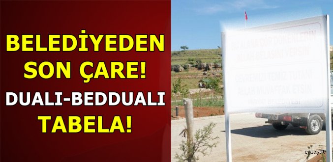 Üzerinde "Bu alana çöp dökenlerin Allah belasını versin" yazının hemen altına da "Çevremizi temiz tutanı Allah muvaffak etsin" yazılarının yazıldığı tabelalar mesire alanının çeşitli yerlerine yerleştirildi.