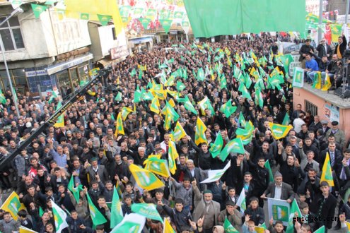 HÜDA PAR Genel Başkanını büyük çoşku ile karşılayan vatandaşlar miting alanına akın etti. Meydanda yer bulamayan vatandaşlar bağlı caddeleri hınca hınç doldurdu. Bir kısım vatandaş ise programı evlerin damlarından takip etti.
