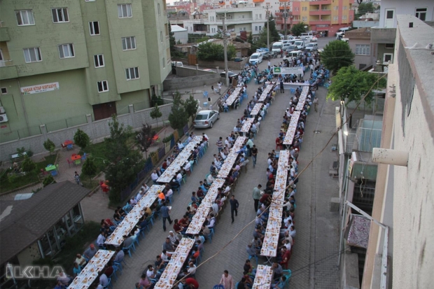 Parti binası önünde sokakta halka açık verilen iftar yemeği programı Suriyeli bir hafızın okuduğu Kur’an-ı Kerim ile başladı.