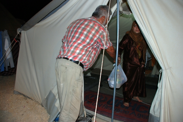 Kumanya dağıtım işlemine Geçici Konaklama Tesisi Çadır Kent Komisyon Başkanı Mehmet İsa Kurnaz, Çadır Kent yetkilisi Orhan Şaşmaz ile Suriyeli muhtarlar katıldı.
