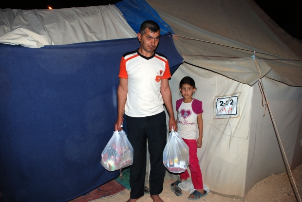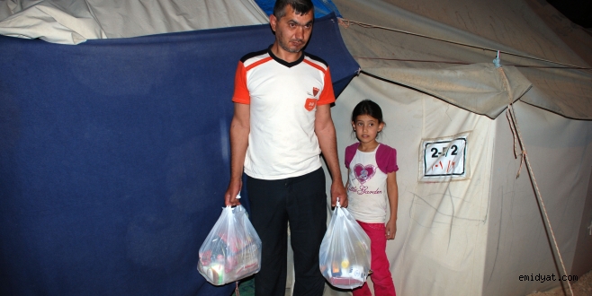 Çadır kentte yaşayan Suriyeli mültecilere vatandaşların katkılarıyla Ramazan kumanyası dağıtıldı.