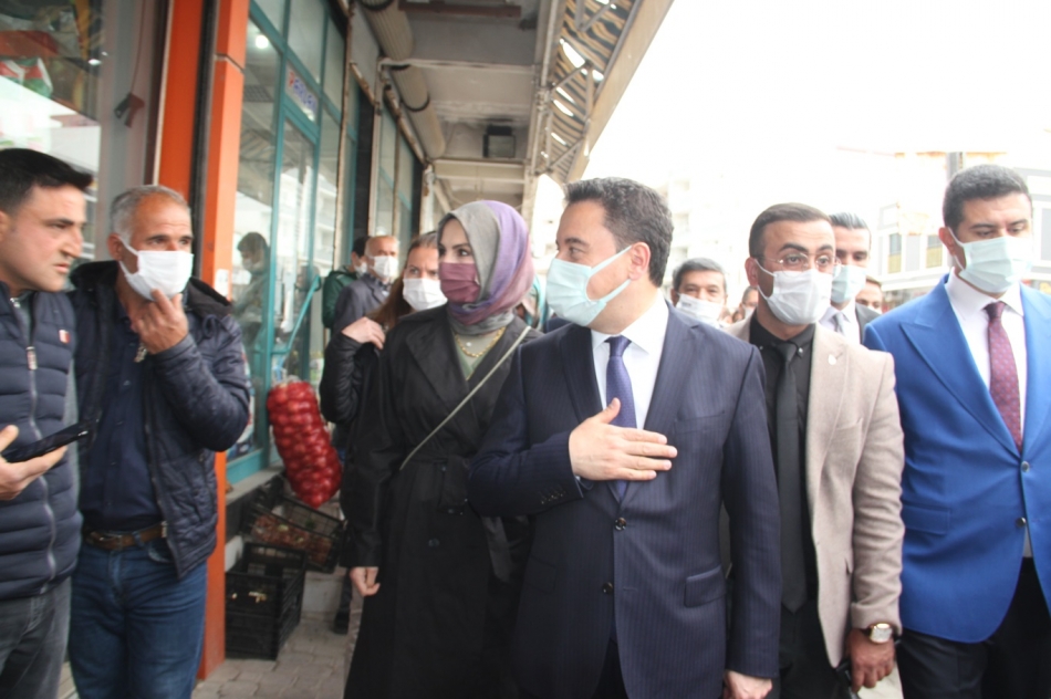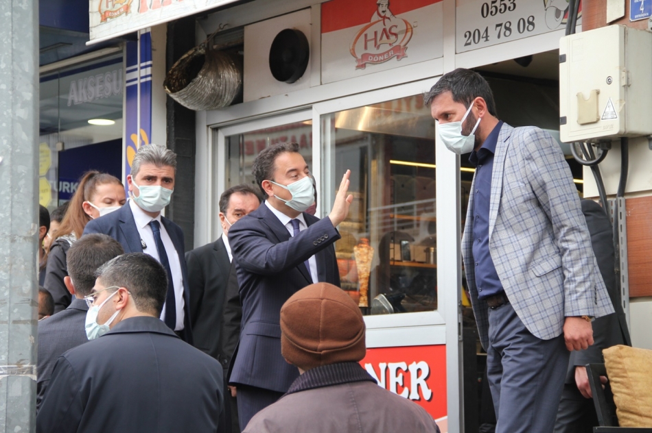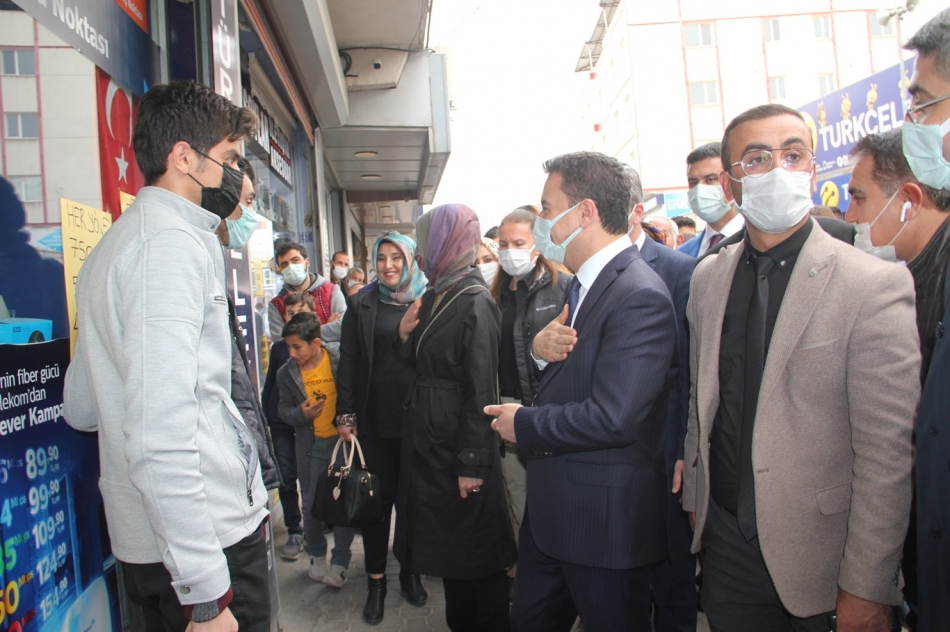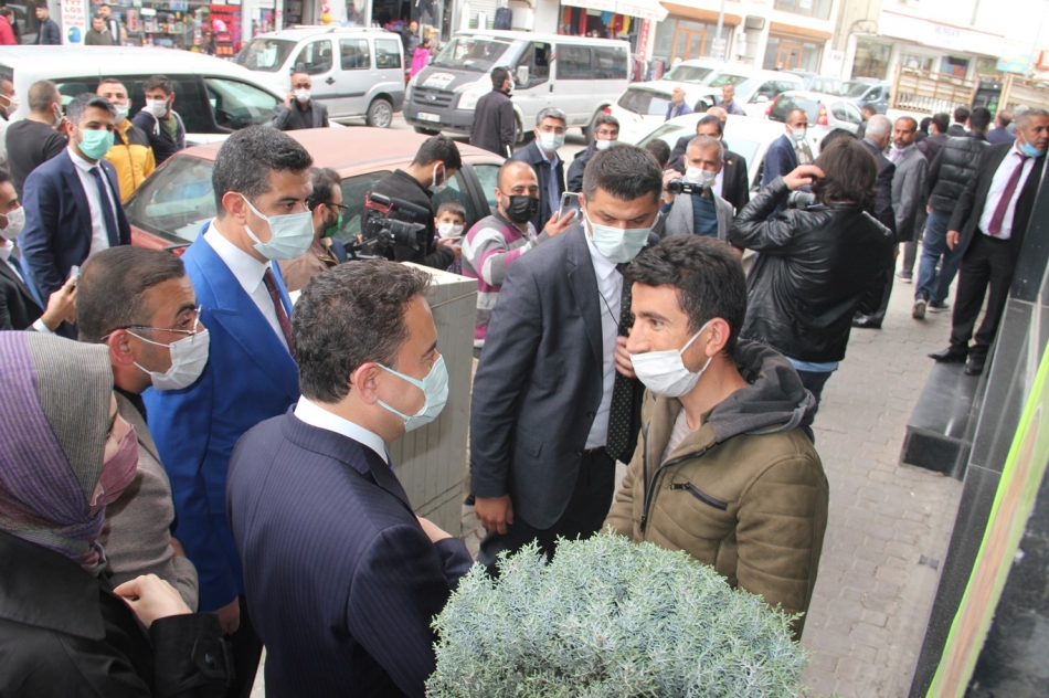 Babacan beraberindeki heyetle burada yaptığı ziyaretlerde bir kısım esnaf ve vatandaşlarla ayaküstü sohbet ederek durumları hakkında bilgi aldı.