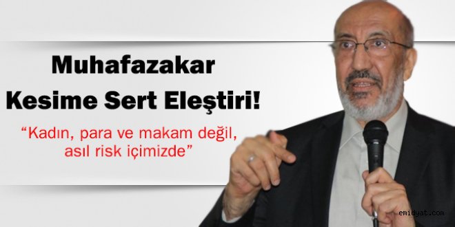 Muhafazakar kesime yönelik (öz)eleştirilere Abdurrahman Dilipak ta katıldı. Dün Milli Gazete`ye açıklamalar yapıp camiaya eleştiriler yönelten Prof.Dr. Cevat Akşit`in ardından bir uyarı da Yeni Akit yazarı Abdurrahman Dilipak`tan geldi. `Kadın, para ve makam` konusunda büyük zaaflar olduğunu belirten Dilipak, "Bana kalırsa bizim için asıl risk kendi içimizde.. Dışarıdan gelen tehditlere karşı birlikte hareket ediyorduk. Şimdi, iktidar nimetlerini elde etmek için rekabet ediyoruz." ifadelerini k
