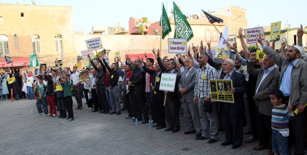 MİDYAT- İhvanı Müslimin ve Mısırdaki darbeye karşı halk direnişine destek için, Midyat Der ve Eğitim Bir Sen Midyat Temsilciği ortak bir basın açıklaması yapıldı. Basın açıklamasında, Mısır Meclisi Milletvekili ve Bütçe Komisyonu Başkanı Muhammed Fakih Midyatlılara hitap etti. Muhammed Fakih yaptığı konuşmada,’’Sizin burada toplanmış olmanız, Mısır’ın derdi ile dertlenmiş olmanız, İslam ümmetinin tek bir ümmet olduğunun belgesidir.” Dedi. Fakih alanda, Türkiye’deki Müslümanların Mısır Müslümanlarının desteklenmesinin oradakilerine daha fazla hamaset geldiğini daha da imani duygularının kabardığını söyledi. “Hazmedemediler, komplolar kurdular”Fakih konuşmasının devamında,’’Mısırdaki kardeşleriniz zalimlere, Hüsnü Mübarek’e, onun yandaşlarına karşı mücadele verdiler, mücadele verdiler onları devirdiler, sonra da seçimler oldu. Beş sefer demokratik seçim yapıldı mısırda bu seçimlerde Muhammed Mursi kazandı. Onun gösterdiği adaylar kazandı. Fakat onlar Mısır’ın demokrasi ile yönetilmesini hazmedemediler. Mısır halkının kendi iradesiyle seçtiği reisle parlamentoyla yürümesine tahammül edemediler. İçerde ve dışarıda Mısır’da komplolar kurmaya başladılar. Mısırda yerel güçler, yasal olmayan yerel güçler, işbirliği içerisine girdiler. İsrail ve Haliç ülkelerinde özellikle dış bağlantılar kurarak bu direnişe karşı koydular.Mısır’da gençlerin talebi belli açık ve net, asker kışlaya dönecek, demokrasinin önüne geçilmeyecek. Herkes özgür bir şekilde yaşayacak. Gençler canlarını verdiler, kız kardeşlerimiz canlarını verdi, meydanda Biltacı’nın kızı Esma canını verdi. Daha nice canlar verildi. Asla ve asla demokratik haklardan vazgeçilmeyecek. Bu özgürleşme mücadelesi devam edecek bu canlar bunun için gitti.’’ İfadelerini kullandı. “Direnişimize devam edeceğiz”Darbe yönetimini anti demokratik seçimlerle kendini dünyaya haklı göstermeye çalışacağını söyleyen Fakih sözlerine şöyle devam etti:’’Ama biz direnişimize devam edeceğiz. Bizler Allah’a güveniyoruz. Ve direnişimizi sonuna kadar sürdüreceğiz. Biz Allah’a iman etmişiz, onun gücüne iman etmişiz. Bize yardım edeceğini biliyoruz. Rabbim bizden yardımını esirgemesin ve ayaklarımızı sabit kılsın. Bizim isteklerimiz öncelikle ordunun kışlaya dönmesi ve demokrasinin devam etmesi. İsteğimiz Demokratik hakların tamamen verilmesi, bütün halk arasında adaletin sağlanması ve insanlara eşit imkân tanınmasıdır. Şehitlerin kanına karşı kısas uygulanmalıdır. Çocuklarımızı, kızlarımızı öldürenler kesinlikle cezalandırılmalıdır. Kurum ve kuruluşların yolsuzluktan arındırılması. Emniyet ve yargının asli işlevlerine geri dönmesi, Özgür, şeffaf bir seçim ortamının sağlanması, bizim taleplerimiz bunlardır.” Mısır’da askeri darbeyi gerçekleştirenlerin ve onların yandaşlarının, kesinlikte yaptıklarının hesabını vereceğini belirterek, pişman olacağını söyledi. Özgürlüğün kazanacağını Mısır’ın kurulacağını ifade eden, Fakih, “Özgür Mısır, adil Mısır, Siyonizm’e direnen Mısır, İnsan haklarının çiğnenmediği Mısır, Müslümanların Mısırı, Arapların Mısırı, Ezherin Mısırı, İhvanın Mısırı kurulacak.” İfadelerine yer verdi. Fakihin konuşması sürekli tekbirler ve sloganlarla kesildi. Basın açıklamasında, İhvan’a selam direnişe devam, kahrolsun Sisi seninleyiz Mursi gibi sloganlar atıldığı görüldü.