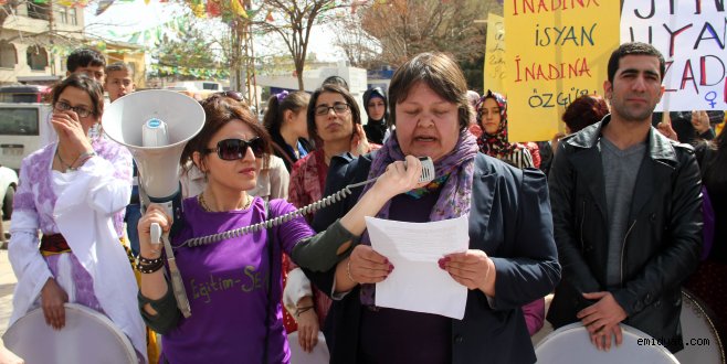 MARDİN- Midyat ilçesinde faaliyet gösteren Eğitim Sen 8 Mart Dünya kadınlar gününü kutlayarak bir basın açıklaması yaptı.Midyat Gölcük Mahallesi Cevat paşa cami yanında bulunan Barış parkında yapılan basın açıklamasını Eğitim Sen Adına Eğitim Sen Kadın Sekreterliği Üyesi ve Çavuşlu İlk Öğretim Okulu Müdür yardımcısı Yaşar Kaygısız okudu.Kaygısız; ”8 Mart 1857 tarihinde ABD‘nin New York kentinde 40 bin dokuma işçisinin daha iyi çalışma koşulları ve eşit işe eşit ücret istemiyle bir tekstil fabrikasında başlattığı mücadelenin ve bu mücadele sonucunda polisin işçilere saldırarak çoğu kadın 129 işçinin hayatını kaybetmesinin anısına, dünyanın her yerinde ve ülkemizde daha iyi bir dünya özlemi taşıyan kadınların hak arama mücadelesinin. 8 Mart, kapitalizmin tarihsel süreçte, kadın ile ihtiyaca bağlı olarak "ucuz emek - kutsanmış annelik" arasında kurduğu ikiyüzlü ilişkinin neoliberal politikalarla ülkemize yansımasının dayatıldığı bir dönemde, kadının varoluş mücadelesi için tarihsel bir anlam kazandığı gündür.” Dedi.Biz kadınlar, yüzyıllardır kapitalizmin ve erkek egemenliğinin yarattığı güvencesizliği, yoksulluğu, işsizliği, şiddetin her türlüsünü, savaşı, ırkçılığı ve militarizmi en yoğun ve en ağır biçimiyle yaşadıklarını belirten Kaygısız;”. Küresel ekonomik kriz, savaşlar ve yaşamlarımızı kuşatan muhafazakârlık biçimleri ile sürekli yeniden üretilen şiddet, cinsiyetçilik ve ırkçılığa maruz kalıyoruz. Ülkemizde, kadın cinayetlerinin yüzde 1400, cinsel taciz ve tecavüzün yüzde 38, cinsel istismarın yüzde 53 oranında artışına yol açan kadın düşmanı politikaların birinci elden sorumlusu erkek egemen AKP iktidarı ve uyguladığı kadın düşmanı politikalardır. Kadınların özel ve toplumsal yaşamda yükselttikleri hemen her itiraz, karşı duruş erkek- devlet-polis şiddeti ile bastırılmaya çalışılmaktadır. “ ifadelerini kullandı.Kadınların insanlık dışı yöntemlerle, vahşice, toplumun, devletin gözü önünde öldürülmesi ve artan kadına yönelik şiddetin faillerinin yargı eli ile tahrik adı altında indirimlerle serbest bırakması kadınları öldürenleri cesaretlendirdiğini söyleyen Kaygısız açıklamasında; ”Bu durum kadın cinayetlerini körüklemektedir Kadınlar yaşamın her alanında ayrımcılığa, baskıya şiddete ve sömürüye maruz kalmakta ve bunun "kader" olarak kabul edilmesi gerektiği vaaz edilmektedir. Hükümetin ürettiği tüm politikalar ve buna bağlı olarak çıkarılan yasaların tamamının fikri alt yapısını " kadın erkek eşit değildir ve kadının asıl yeri aile içidir, evidir" anlayışı oluşturmaktadır.” Sözlerine yer verdi.Kadın Bakanlığı‘nın kaldırılarak yerine Aile ve Sosyal Politikalar Bakanlığı‘nın kurulması aynı yaklaşımın sonucu olduğunu kaydeden Kaygısız konuşmasını şöyle sürdürdü;” Hükümet hayata geçirdiği emek düşmanı yasal düzenlemelerle, emek-sermaye ilişkisini ve çalışma yaşamını esneklik paradigması çerçevesinde dönüştürmeyi amaçlıyor. Bir yandan var olan hakları tırpanlarken diğer yandan da taşeron, ucuz, geçici ve güvencesiz çalışma biçimlerini kurumsallaştırarak ülkeyi ucuz emek cennetine çevirmek istiyor. Kadın istihdamını artırmaktan kastedilen ise esnek ve güvencesiz çalışma biçimleri ile toplumsal yaşamın dışına iterek kadın emeği sömürüsünü daha da artırmak anlamına geliyorBiz kadın emekçiler, kamu hizmetlerinin özelleştirildiği, esnek-kuralsız, güvencesiz, performansa dayalı çalışmanın yaygınlaştığı, iş yükümüzün her geçen gün arttığı bir ortamda, iş kanunundan, sosyal güvenliğe, sendikalar kanunundan ulusal istihdam stratejisine kadar birçok emekçi düşmanı yasal düzenleme ile düşük ücretle çalışmaya zorlanmakta ve işsizliğe mahkûm edilmek istenmekteyiz. Kadın olduğumuz için çalıştığımız işyerlerinde bir taraftan yükselme ve terfilerde ayrımcılığa maruz kalırken diğer taraftan tacize, şiddete ve mobbinge uğramaktayız. Bütün bunların yanında, sosyal devletin sorumluluğu olan ve toplumsallaşması gereken ev işleri, çocuk, yaşlı ve hasta bakımı vb. sadece kadınların yapması gereken işler olarak hala dikte edilmektedir. AKP Hükümetinin bir yanı ile piyasacı diğer yanı ile gerici politikaları biz kadınları toplumsal yaşamdan dışlayarak eve hapsetmeyi hedeflemektedir. Bir taraftan sosyal haklarımız kısıtlanırken diğer taraftan işyerlerinde ücretsiz kreşlerin olmadığı koşullarda, bizlere yapılan "en az üç çocuk doğurun" telkinleri sosyal rolümüzü ev-çocuk-yaşlı bakımı üçgeni olarak tanımlamaktadır.”Kadın bedeni üzerindeki tüm söz ve karar haklarının kadına ait olduğunun kabul edilmesini isteyen Kaygız;” siyasi iktidarların kadının bedeninden elini çekmesini, "Kadın"ı aile ve namus ile kurumsal olarak da özdeşleştirilen Aile ve Sosyal Politikalar Bakanlığı‘nın kaldırılarak Kadın ve Eşitlik Bakanlığı‘nın kurulmasını, Kadın istihdamında tek seçenekmiş gibi görünen esnek-güvencesiz-kayıt dışı ve taşeron çalıştırmaya son verilmesini, Militarizmin ve savaşın en çok kadınları etkilediği bilinci ile barışın bir an önce demokratik yollarla sağlanması, Eşit işe eşit ücret ve insanca yaşanmasına olanak veren "yeterli ücret" verilmesini, Sendikalaşma ve örgütlenme önündeki her türlü yasal ve fiili engellerin kaldırılmasını, Ev işçisi ve ev eksenli çalışan kadınların emeklerinin görünür kılınarak sosyal güvence kapsamına alınmasını, Çocuklarımızı güvenle bırakacağımız ücretsiz, sağlıklı kreşler ve bakım evlerinin sağlanmasını, Başta cinsiyet ayrımcılığı olmak üze