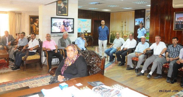 MİDYAT- Mahalle muhtarları son günlerde sık sık yaşanan ve halkı canından bezdiren elektrik ve su kesintilerine çare bulmak için Midyat Belediye Başkanı Şehmus Nasıroğlu ile görüştüler. Ziyaretin ardından belediye başkanı Nasıroğlu ve muhtarlar ortak basın açıklaması düzenleyerek yetkililerden soruna çözüm bulunması istediler.