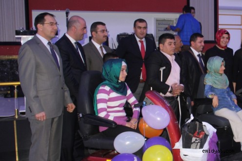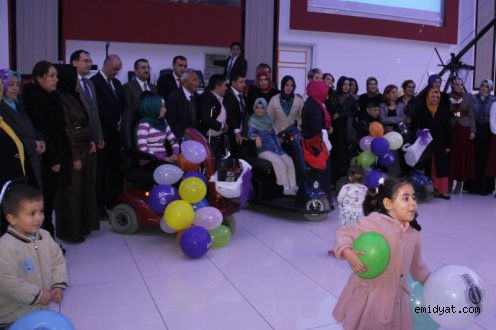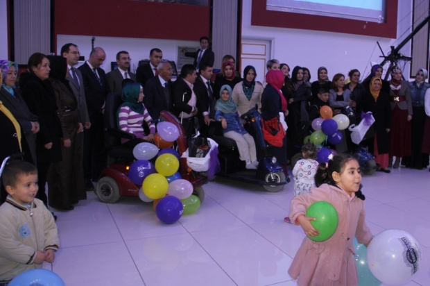 Yapılan konuşmaların ardından 3 yürüme engelliye elektrikli araç verildi.