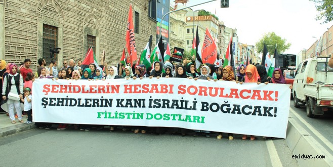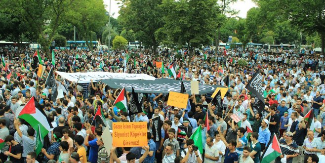 Yürüyüş esnasında sık sık tekbirler getirilirken, “Müslüman zulme boyun eğmez, Türkiye’den Gazze’ye direnişe bin selam, Kahrolsun İsrail, Katil İsrail Filistin’den defol, Hamas’a selam direnişe selam, Mescidi Aksa onurumuzdur, Katil Amerika Ortadoğu’dan defol, Siyonist elçilik kapatılsın” şeklinde sloganlar atıldı. Saraçhane Parkında yapılan konuşmalarda israil’in yaptığı katliam lanetlenirken Gazze’deki Müslümanlar için dualar yapıldı.