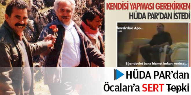 PKK lideri Abdullah Öcalan`ın, HÜDA PAR`dan özeleştiri yapmasını isteyip, "…Bu süreci benimsedikleri zaman demokratik siyasette yer alabilecekleri" yönündeki sözlerine HÜDA PAR`dan yanıt gecikmedi. HÜDA PAR sözcüsü Said Şahin, `Öcalan önce içinde kundaktaki bebeklerin olduğu öldürdüğü 10 binlerce insanın özeleştirisini versin` dedi.