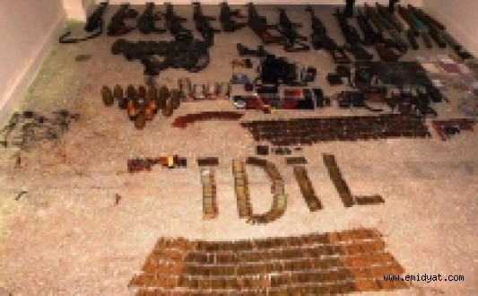 Evde yapılan aramada ele geçirilen mühimmatın, “Roketatar ve buna ait çok miktarda mühimmat, 6 keleşnikof uzun namlulu silah ve bu silaha ait 500 fişek, otomatik av tüfeği, 58 el bombası, 5 el yapımı patlayıcı tüp, 8 uzaktan kumandalı kullanıma hazır el yapımı patlayıcı, 5 anti tank roketi, 21 hücum yeleği, 18 anti personel roket mühimmatı, 4 akü, 7 uzaktan komuta mandalı, 30 kalem pil ve uzaktan patlatmak için kullanılan 300 metre kablo.” olduğu belirtildi.