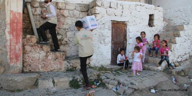 IHO-EBRAR yardım paketleri, Midyat’ta hayırlı hizmetlerini sürdüren Azim-Der Yardım Komisyonu aracılığıyla, önceden tespit edilen ailelerin evlerine götürülmek suretiyle teslim edildi.