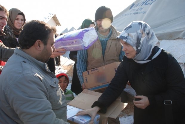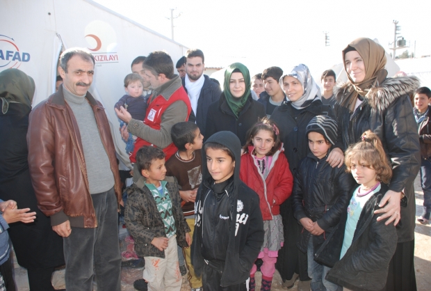 Ayla Kerimoğlu ve beraberindeki Hazar Derneğinin yönetim kurulu üyeleri daha sonra çadır kent komisyon üyesi Mehmet İsa Kurnaz, AFAD ve Türk Kızılay yetkilileri eşliğinde kamptaki sığınmacıları ziyaret etti. Burada bulunan kadın ve çocuklara yanında getirdikleri malzemeleri dağıtarak sorunlarını dinlediler.
