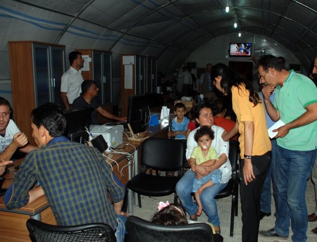 Midyat Geçici Barınma Merkezi'ne yerleştirme işlemleri yapılan Êzidi sığınmacıların sağlık kontrolünden geçirdiklerini belirten Esen, “Irak’tan gelen Êzidiler, kampa ilk girişleri ile beraber, aramadan geçiriliyor. Ondan sonra kayıt kabule alınıyor, kayıt kabulleri yapıldıktan sonra, sağlık taramaları yapılıyor, aşıları takip ediliyor, tedavilerinin yapılması için bulaşıcı hastalıkları olanların yine kayıtları tutuluyor, sağlık taramaları bu şekilde devam ediyor.” ifadelerini kullandı.