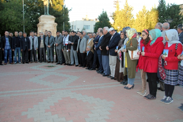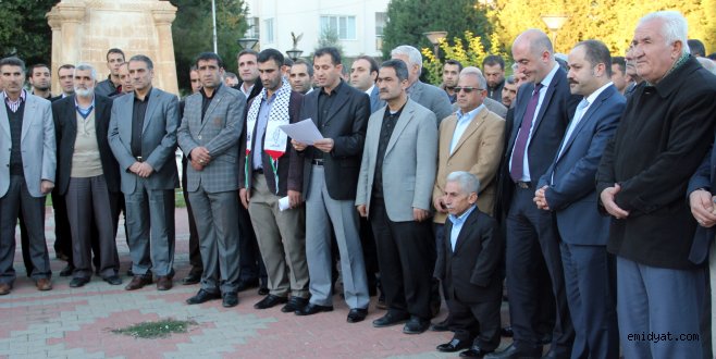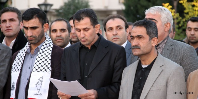 MİDYAT- Müslümanların ilk kıblesi ve üç kutsal Mescitten biri olan Mescid- i Aksa’ ya Siyonist İsrail askerlerinin postallarıyla girmesi Midyat STK platformu tarafından düzenlenen basın açıklamasıyla kınandı.Siyonist İsrail askerlerinin tavrını kınayan basın açıklamasını Midyat STK platformu adına Eğitim Bir Sen Midyat temsilcisi Abdulkadir Altay okudu.Altay, açıklamasında, Müslümanların ilk kıblesi ve üç kutsal mabedten biri olan Mescid-i Aksanın, Siyonist İsrail askerlerince işgal edildiğini belirterek, ’’ Bu işgale karşı direnen Filistinli kardeşlerimizden onlarcası İsrail askerinin saldırıları neticesinde yaralanmıştır. İşgalci Siyonist İsrail, ABD ve haçlı zihniyeti taşıyan batı ile birlikte İslam dünyası içine fitne koyarak, dikkatleri Irak ve Suriye’deki çatışmalara çektiği sırada önce Gazze’yi bir ayı aşkın süre boyunca bombalamıştı. Şimdide kutsal mescidimiz işgalci İsrailliler tarafından çiğnenmektedir. Buna karşı direnen onurlu Filistin halkı, İsrail tarafından mermiler, bombalar ve gazlarla katledilmeye çalışılmaktadır. 1948 den beri sürdürdükleri işgal ve soykırımlarına devam etmektedirler. Orada çiğnenen sadece Mescid-i Aksa’nın halıları değildir. Bir buçuk milyar Müslüman’ın yani hepimizin izzeti ve şerefidir.’’ Dedi.Altay, İsraillin dünyanın şımarık ve zalim çocuğu olduğuna dikkat çekerek, ‘’Filistin halkına uyguladığı izolasyon, Müslümanlara ait topraklarda yeni yerleşim yerleri açma, Mescid-i Aksa’yı ibadete kapatma ve haksız tutuklamaları gibi bu sınır tanımaz eylemleri dinler arası bir savaşa sebep olacağı gibi çok kan dökülmesine de sebep olacaktır. Buradan tüm dünya Müslümanlarına Filistin’deki kardeşlerimizin başlattığı üçüncü intifada destek olamaya çağırıyoruz. Yine tüm Müslümanları ve Davos’ta İsrail başkanına “oneminuet” diyerek İslam Dünyasında kahramanlaşan cumhurbaşkanı R. Tayyip ERDOĞAN ve Davutoğlu hükümetini İsrail’le her türlü diplomatik, ekonomik ve askeri ilişkilerini kesmeye çağırıyoruz. Hiç değilse İsveç ve Güney Amerika ülkeleri gibi Türkiye’ninde Filistin Devletini resmen tanımaya davet ediyoruz. Tüm kardeşlerimizi İsrail’e destek veren şirketlerin mallarını boykot etmeye çağırıyoruz.’’ İfadelerini kullandı.Altay, Filistin’de yaşanan vahşet ve zulmün son bulacağı, Özgür Filistin’in kurulacağı ve Mescid-i Aksa’da özgürce namaz kılacağı günlerin yakın olduğunu ve kamuoyunu bu konuda dua ve hassasiyete davet ettiklerini söyledi.Basın açıklamasından sonra grup sessizce dağıldı.