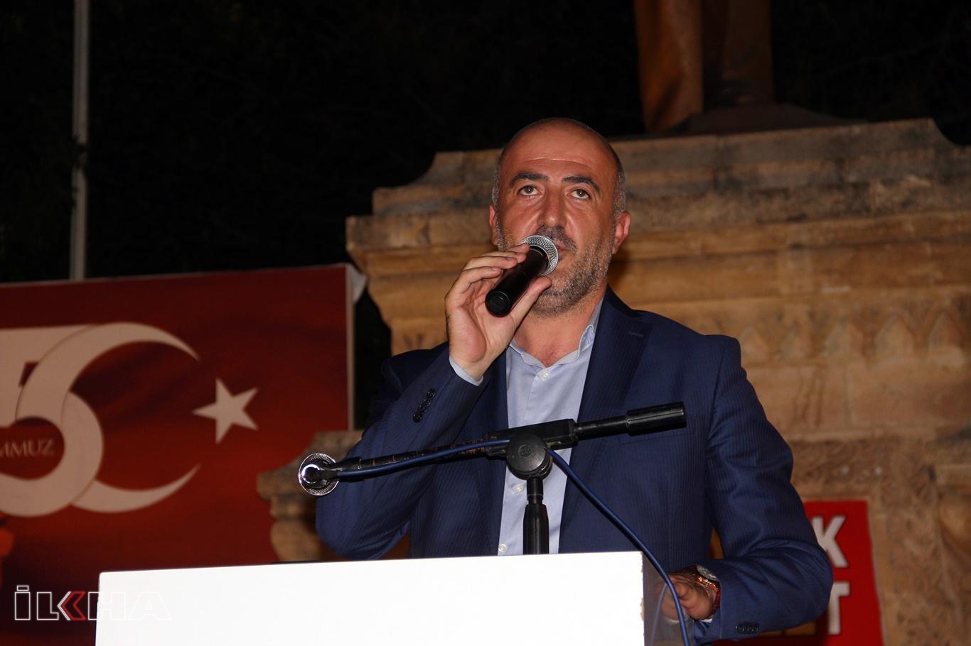 Ama onların hesap edemediği bir şey vardı. Birkaç saat içerisinde Türkiye’nin her köşesinde yüz binlerce insan sokaklara aktı. Bu aziz millet tank ve kurşunlara karşı yürüdü. Yaşlılar, gençler ve kadınlar kurşunlara karşı yürüyüp tarih değiştiriyordu. Ve bu millet yeniden Çanakkale ruhuyla dirilişe geçiyordu. Millet tekbir ve salâvatlar getirerek yürüyen bir ordu olmuştu o gün. Hepimizin geleceğini, memleketini kara şeytan FETÖ’nün kirli ellerinden çekip tertemiz bir hale getiriyordu. Herkes ama herkes Türkçe bağırıyor, Kürtçe konuşuyor, Arapça dua ve Lazca cesaret veriyordu bu aziz millete. Ve bu aziz milletin bütün renkleri, bütün gülleri ve yürekleri aynı ritimle atıyordu.” dedi.