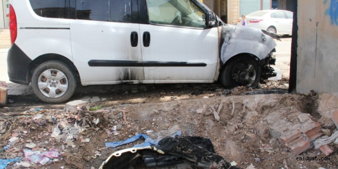Midyat'ta esnaflık yapan Serdar Atlı'ya (40) ait park halindeki 63 HY 037 plakalı araç gece saatlerinde kimliği belirsiz kişiler tarafından benzin dökülerek ateşe verildi. Araç kullanılamaz hale gelirken, kaçarak ortadan kaybolan olayın failleri henüz yakalanamadı.