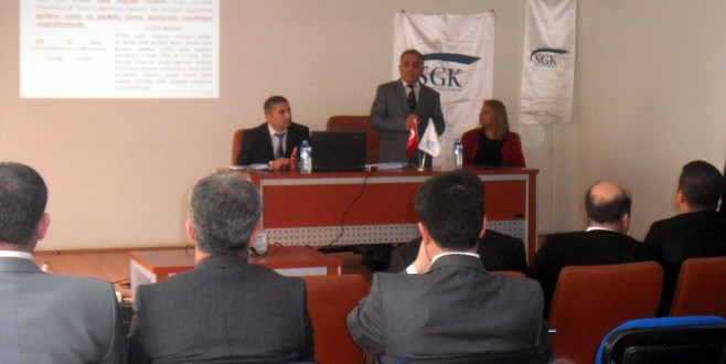 Mardin'in Midyat ilçesinde SGK, kamu müdürlerine yönelik 6652 sayılı torba kanun hakkında bilgilendirme semineri verdi.