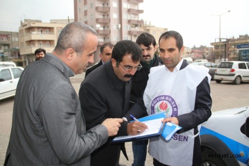 Eğitim Bir Sen üyeleri basın açıklamanın ardından imza kampanyası başlattı.