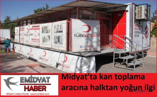Kızılay’a bağlı Güney Anadolu Kızılay Bölge Kan Merkezi’nin organize ettiği, ”Bağışlanan her kan, kurtarılan üç can” sloganıyla Midyat Belediyesi avlusuna kurulan gezici kan toplama aracı, kan vermek isteyen vatandaşların yoğun ilgisiyle karşılaştı.