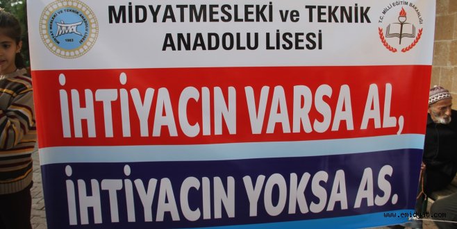 Midyat Mesleki ve Teknik Anadolu Lisesi idareci ve öğretmenleri nezaretinde ‘İhtiyacın varsa al, ihtiyacın yoksa as’ adlı elbiselerini paylaşma projesi takdirle karşılandı.