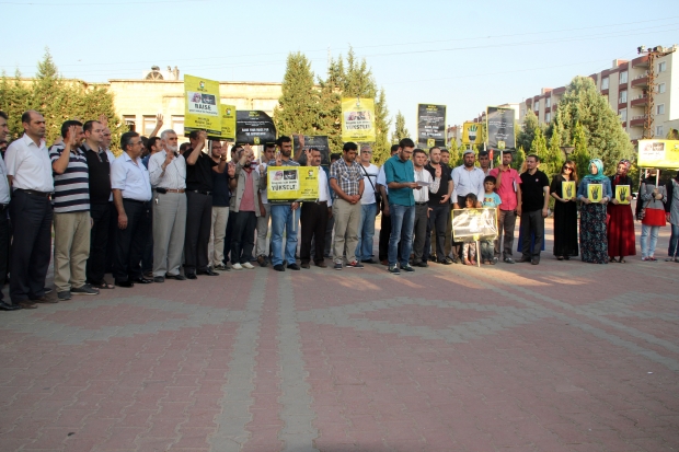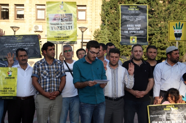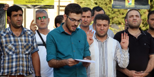 MARDİN - Midyat Rabia Platformuna bağlı STK`lar, Yenimahalle Cumhuriyet Bulvarı Atatürk Anıtı Parkı`nda 14 Ağustos Dünya Rabia Günü dolayısıyla Mısır halk direnişine destek vermek amacı ile bir araya gelip ortak basın açıklaması düzenledi.