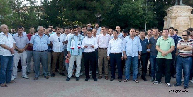Midyat Belediye binası yanındaki alanda toplanan, bir gurup sivil toplum kuruluşu, İsrail'in Gazze’ye yönelik saldırısını protesto ederek basın açıklaması yaptı.Midyat belediyesi önünde toplanan grup adına basın açıklamasını Diyanet-Sen Midyat Temsilcisi Zeyni Bedir okudu.Bedir yaptığı açıklamada“Geçtiğimiz Haziran ayı ortasında Batı Şeria’da kaybolan üç Yahudi’nin daha sonra ölü bulunması, İsrail’in bir süredir devam eden ateşkesi ihlal ederek başlattığı kalleş saldırılarının, bahanesi olarak sunulmuştur. Bizler de başta Filistin olmak üzere Suriye, Irak, Doğu Türkistan, Orta Afrika, Myanmar, Mısır ve tüm mazlumlardan yana olduğumuzu gür bir sesle tekrar haykırıyoruz. 1995 yılında Bosna da Srebrenissa da katledilen kardeşlerimizi unutmadık, unutmayacağız. Güya insan hakları savunucuları olanlar, dün Bosna’daki katliama göz yumdular. Bugün de Gazze deki katliama sessiz kalmaları yanı sıra İsrail’e destek verenleri lanetliyoruz. Müslümanlar olarak bize düşen görev, yıllardır süren Siyonist zulmüne karşı İsrail mallarına boykot kararı almaktır.” Dedi.Bedir, açıklamsının devamında ‘’Ey eli kanlı İsrailliler; yerdekiler ve göktekiler şahit olsun ki, bizler er ya da geç bu şehitlerimizin intikamını sizlerden alacağız! Selam sana kutlu direnişin şanlı birliği Hamas ve selam olsun bütün ümmete…" ifadelerini kullandı.Yaşasın küresel intifada, yaşasın mazlum Filistin halkı" ve "Filistin halkı yalnız değildir" sloganları atan grup, yapılan duanın ardından dağıldı.