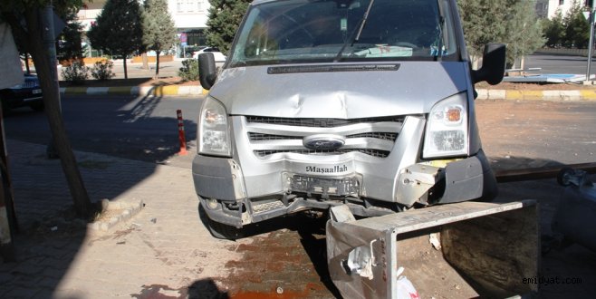 Hastaneye diyaliz hastalarını taşıma servisi yaptığı belirtilen aracın kavşakta bulunan reklam tabelasını devirerek karşı yolun kaldırımında bulunan çöp konteynırlarına çarparak ancak durabilen araçta maddi hasar meydana geldi.