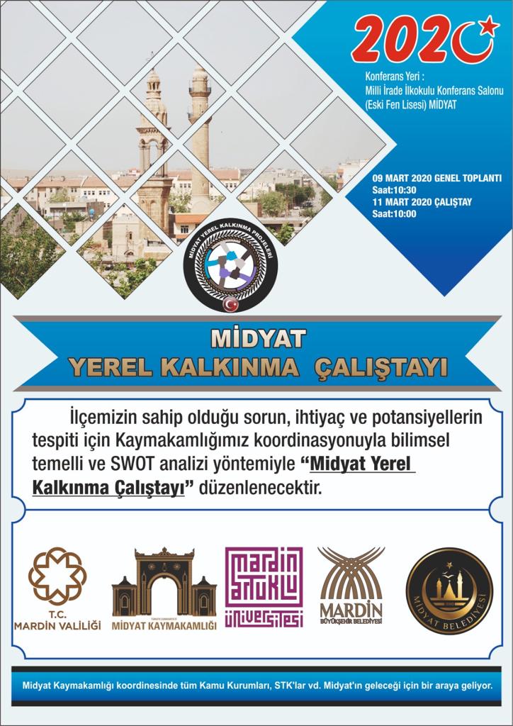 “İlçemizin adrese dayalı nüfus kayıt sistemi verilerine göre 2019 yılındaki nüfusu 114.763 kişidir. İlçemizde kadimden beri farklı etnik ve inanç grupları bir arada ve ortak yaşama kültürü içerisinde yaşaya gelmiştir. Bu durum, beraberinde birçok pozitif potansiyeli barındırmakta ve ilçenin gelişimi için büyük fırsatlar sunmaktadır. Bu minvalde ilçemizin sahip olduğu sorun, ihtiyaç ve potansiyellerin tespiti için Kaymakamlığımız koordinasyonuyla Mardin Valiliği, Mardin Büyükşehir Belediyesi, Midyat Belediyesi ve Mardin Artuklu Üniversitesi desteğiyle bir bilimsel temelli ve SWOT analizi yöntemiyle "Midyat Yerel Kalkınma Çalıştayı" düzenlenecektir.
