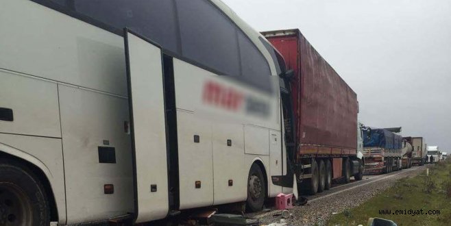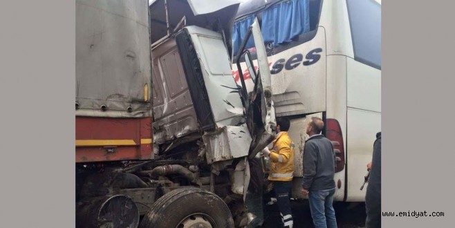 Olay yerine gelen 112 sağlık ekipleri, sıkışan yolcu otobüsü ve arkadaki TIR sürücüsünü uzun süren çalışmalardan sonra çıkarabildi.