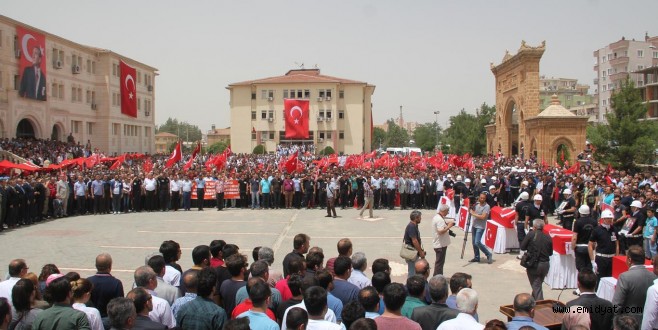 Midyat’ta bombalı araçla yapılan saldırıda hayatını kaybeden polis memurları Şerife Özden Kalmış (31) ile Nefize Özsoy ve siviller Fahrettin Ekici (31), Bekir Sayan (61) ve Hayriye Sayan (59) için tören düzenlendi.