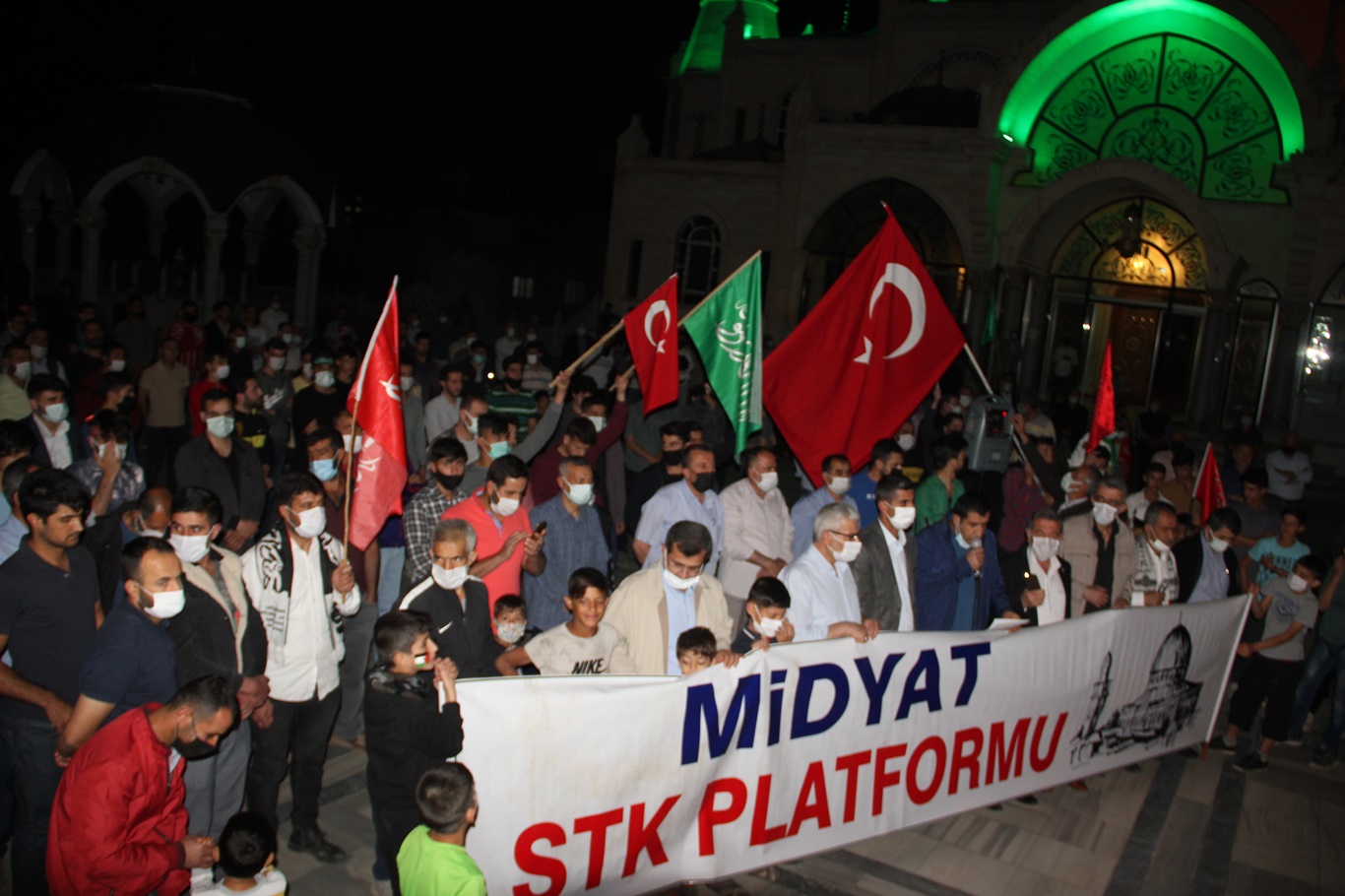 Bu akşamda meydanlara inen yüzlerce kişi Hacı Kasım Altunkaya Camisi avlusunda bir araya geldi. Basın açıklamasını Eğitim-Bir-Sen Midyat İlçe Başkanı Hüseyin Yücel okudu.