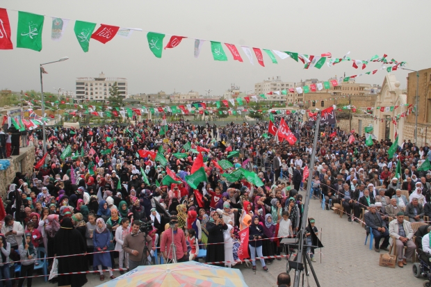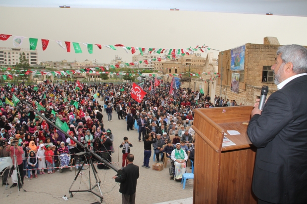 İlçe otogarının yanındaki alanda düzenlenen etkinliğe Midyat ilçe Kaymakamı Hüseyin Tekin, İlçe Emniyet Müdürü Temel Salman, İlçe Milli Eğitim Müdürü Abdulkadir Altay, HÜDA PAR İlçe Başkanı İsa Altunkaynak, çeşitli STK temsilcileri, âlimler, eğitimciler ve ilçe halkının yanı sıra çevre köylerden yüzlerce peygamber aşığı miting alanını doldurdu.