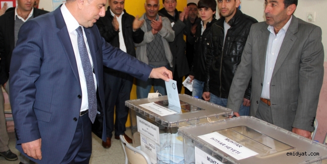 Mardin'in Midyat ilçesinde belediye başkan adayları oylarını kullandı.