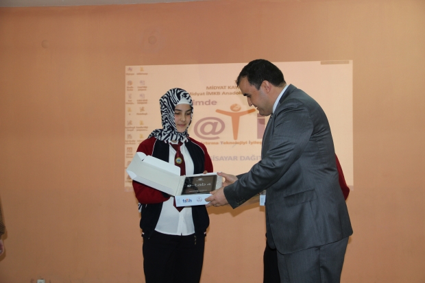 MARDİN- Fatih projesi kapsamında Midyat İlçe Kaymakamlığı, Midyat İMKB lisesinde düzenlenen törenle dokuzuncu sınıf öğrencilerine tablet dağıttı. Tablet dağıtım törenine, Midyat Kaymakamı Oğuzhan Bingöl, İlçe Milli Eğitim Müdürü İbrahim Şişman, Emniyet Müdürü Serdar Yurdagül, diğer bazı kurum amirleri ile okul müdürleri, öğretmenler ve öğrenciler katıldı. Törende öğrencilere hitaben kısa bir konuşma yapan kaymakam Bingöl, “Bir tebeşirin, bir kara tahtanın elde edemeyeceği başarı yoktur. Bunun üstüne eksik kalmamanız için bu tabletler dağıtıldı. Başarısızlığınızın hesabı artık sizden sorulacak. İmkanlarınız artık kısıtlı değil. Bu tabletlerle sadece ders çalışın demiyorum ama dikkatli ve uygun kullanın.” dedi. Törenin ardından öğrencilere tabletleri verildi. Midyat Milli Eğitim Koordinatörü Abdurrahim Çelik’in verdiği bilgiye göre, Midyat ilçe merkezindeki liselerde dokuzuncu sınıflara 805 adet tabletin dağıtılacağını, Beldelerde bulunan liselere ise 1 Nisan‘dan itibaren akıllı tahta ve tablet dağıtımı yapılacak. Tablet dağıtım töreni yapılan ikramların ardından sona erdi. (Adnan Oğuz İLKHA)