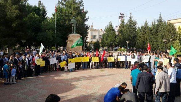 Midyat Belediyesi yanındaki parkta yapılan basın açıklamasında; Mısır’daki cuntaya, Mısır Müftüsüne ve İslam ülkelerine seslenilerek uyarılarda bulunuldu.