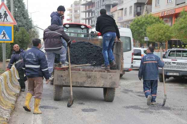 Midyat’ ta yollarda açılan çukurlar Midyat Belediyesi tarafından yamalanarak asfaltla dolduruluyor.