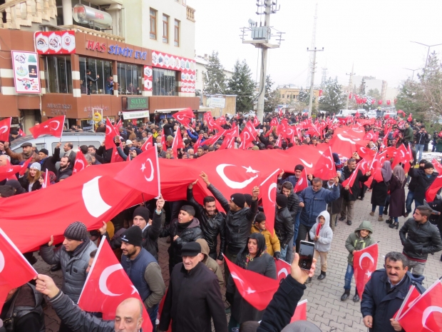 Mitingde bir konuşma yapan Midyat Belediye Başkanı Şehmus Nasıroğlu, "Midyat barış kentidir. Bu barışı Allah'ın izniyle tüm Türkiye'ye yaymak için hep birlikte burada toplandık. Burada ülkemize yapılan emperyalist saldırılara karşı çıkmak için elimizden gelen bütün gayreti göstereceğiz. Çünkü Sonuçta bir kurtuluş savaşı veriyoruz. Kime karşı? Dünyayı sömürmek isteyen emperyalist güçlere karşı. Bizi çepeçevre sarmışlar. Ülkemizi bölmek istiyorlar. Bu bölünmeye karşı dik duracağız. Suriye'nin halini görüyorsunuz. İnsanlar oradan kaçtı, her biri bir yere gitti. Yoksulluk içinde yaşıyorlar. Bunu en iyi bilen, en iyi anlayanlar bizleriz. Niye? Çünkü çoğunluğu buraya geldi. Onların durumlarının ne olduğunu biz gözlerimizle gördük. Niye? Emperyalist güçler Suriye'yi işgal ettiler. Suriye'yi parçalamak için ellerinden geleni yaptılar. Irak'a da yaptılar. Bunu Türkiye'de de yapmak istiyorlar. Ama yapamayacaklar.” dedi.