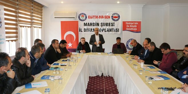 Eğitim Bir-Sen Mardin Şubesi İl Divan Kurulu toplantısı Öğretmen Evinde Şube Başkanı Eyyüp Değer başkanlığında yapıldı. Toplantının açılış konuşmasını yapan Değer, duyulduğu andan itibaren büyük tepkiyle karşılanan “Öğretmen Performans Değerlendirme” sistemini eleştirdi.
