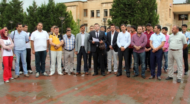 MİDYAT- Türk Eğitim Sen, Eğitim Sen, Eğitim İş, Eğitim Bir Sen, Türk Yerel Sen, Türk Diyanet Vakıf Sen ve Mider üyeleri, Yenimahalle Cumhuriyet Bulvarı Atatürk Anıtı Parkı'nda bir araya gelip Kayseri'de bir öğretmenin ölümüne yol açan saldırıyı yaptıkları basın açıklaması ile kınadılar. Yenimahalle Cumhuriyet Bulvarı Atatürk Anıtı Parkı'nda bir araya gelen eğitim sendikaları adına ortak basın açıklamasını Türk Eğitim Sen Midyat Temsilcisi Mustafa Yılmaz, yaptı.Kayseri'de Seyyid Burhanettin Endüstri Meslek Lisesi Teknik Müdür Yardımcısı Mehmet Aktaş'ın öğrencisinin saldırısı sonucu hayatını kaybettiğini hatırlatan ve Öğretmen Aktaş'a yapılan saldırıyı kınadıklarını vurgulayan Yılmaz, “Değerli dostlar… Bugün burada Kayseri’de öğrencisinin vahşi saldırısı sonucu hayatını kaybeden Mehmet Aktaş öğretmenimiz için toplanmış bulunmaktayız. Bütün eğitim sendikaları olarak bu olayı kınıyor ve merhum öğretmenimizin acılı ailesine başsağlığı diliyoruz.”dedi. Mehmet Öğretmenin 16 Mayıs Cuma günü öğrencisi tarafından saldırıya uğrayıp 18 gün boyunca yaşam mücadelesi verdikten sonra 3 Haziran Salı günü hayatını kaybettiğini hatırlatan Yılmaz, “Gün geçmiyor ki öğretmene yönelik şiddet eylemlerine bir yenisi daha eklenmesin. Bir zamanlar eli öpülesi öğretmenlerimiz vardı. Saygıda kusur etmemek için ne yapacağımızı şaşırdığımız öğretmenlerimiz… Buradan soruyoruz sizlere: O günlerden bu güne ne değişti? Yüzbinlerce öğretmenimiz memleketini, ailesini, yuvasını niçin terk edip gurbet ellere gidiyorlar? Birileri tarafından vahşice öldürülmek için mi? Buradan aziz milletimize ve Milli Eğitim Bakanlığımıza sesleniyoruz. Bizim bakanlığımıza. Lütfen öğretmenlerimize; eğitim neferlerimize yönelik şiddet eylemlerine tepkisiz ve duyarsız kalmayalım. Öğretmenlerimizin ve bütün kamu çalışanlarının yanında duralım. Onları gurbet ellerde sahipsiz bırakmayalım’’ ifadelerini kullandı.Yılmaz ‘’Bütün eğitim sendikaları olarak isteğimiz gerekli olan yasal düzenlemelerin bir an evvel tamamlanıp uygulamaya konulmasıdır.”dedi. Yapılan basın açıklamasının ardından merhum öğretmen Mehmet Aktaş için Fatiha okundu