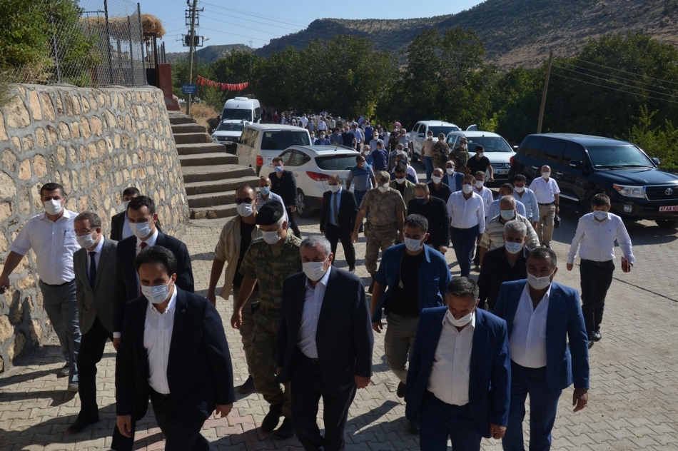 “Bunlar devletimiz tarafından şehit statünde kabul etmiştir, sivil vatandaş olmasına rağmen, devletimiz her şehit ailesine sahip çıktığı gibi bu insanlarımıza sahip çıkmıştır. Bu insanlarımızın mağdur olmaması için her türlü imkânı seferber etmiştir. Diğer tüm bölgelerde olduğu gibi bu bölgede de terörle mücadelemiz kesintisiz bir şekilde ve ara vermeksizin devam ediyor. Ve terör örgütü inşallah bitme noktasına gelmiştir. Artık hiç kimsenin bu ülkeye, bu bölge insanına, vatandaşımıza huzurunu kaçıracak bir fırsatı izin verme durumumuz imkânımız yoktur.” dedi.