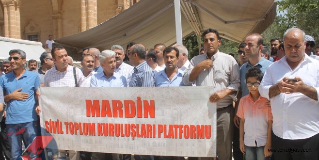 Mardin merkez Artuklu ilçesi Yenişehir Mahallesi’nde bulunan Fuat Yağcı Camii’nde kılınan Cuma Namazı sonrası yapılan basın açıklamasına halk yoğun katılım gösterdi. “Zalimler için yaşasın cehennem” diyen grup, tekbirlerle tepkilerini dile getirdiği.