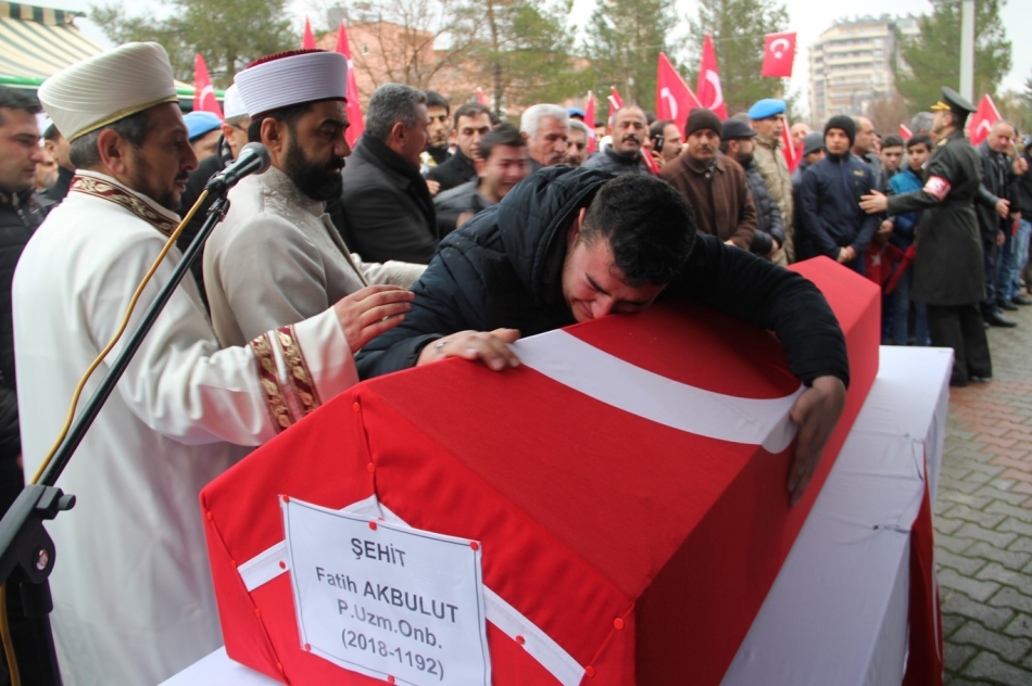 Barış Pınarı Harekât Bölgesi'nde yol kontrolü sırasında PKK/YPG'nin bombalı araç saldırısı sonucu hayatını kaybeden dört askerden biri olan Uzman Onbaşı Fatih Akbulut'un (26) cenazesi, Mardin'in Midyat ilçesinde defnedildi.