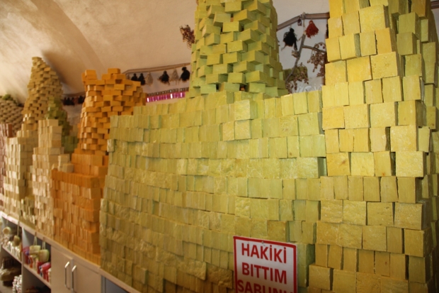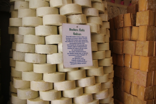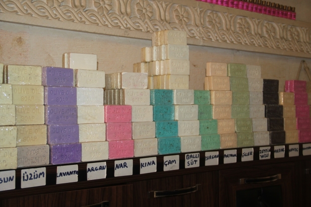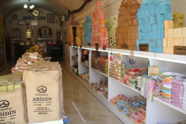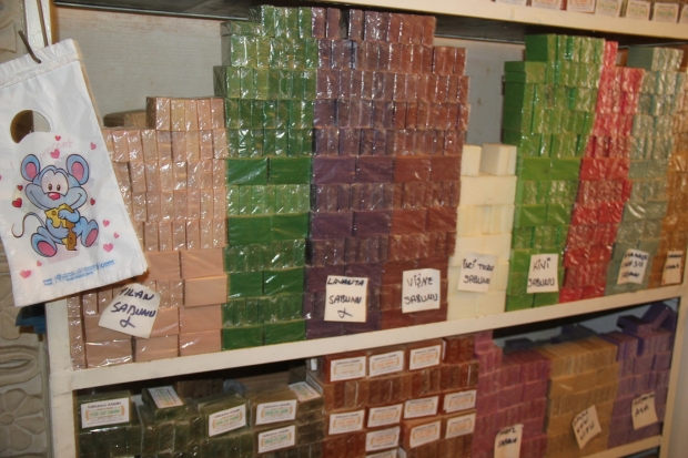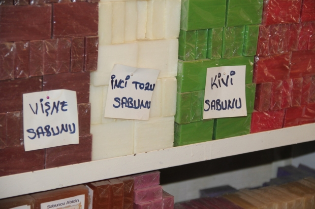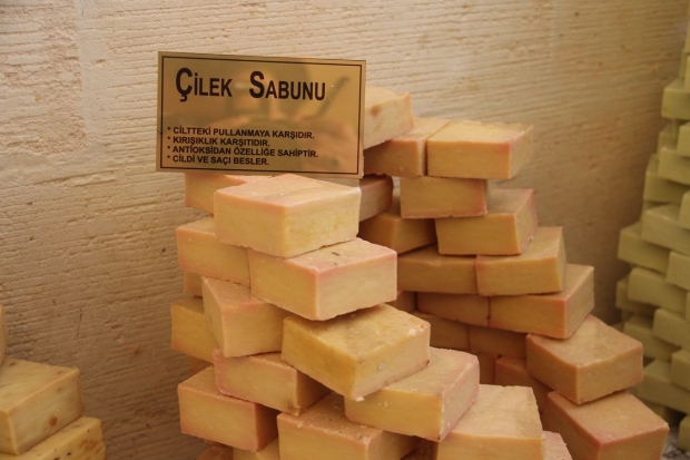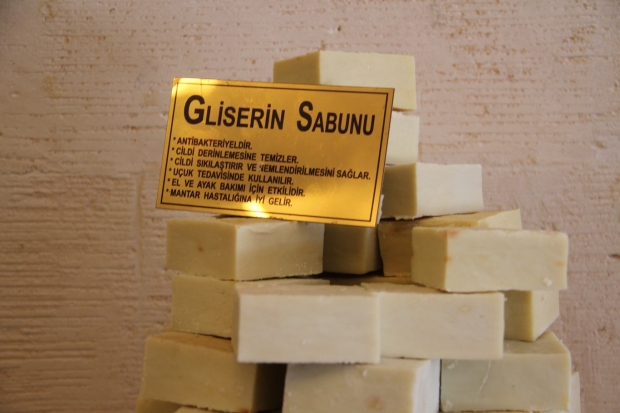 Bitkisel sabun kullanmanın sağlık açısından önemine vurgu yapan Savaşçı, “Elimizde olan bıttım sabunu en çok tercih edilen doğal sabunlardan biridir. Bu sabunun özellikle cilt hastalıklarından sedef egzama, cilt kuruluğu, sivilce, akne, kırışıklıklar, ayak mantarı gibi hastalıkların giderilmesinde çok faydalıdır. Ayrıca yüz bakımı için özellikle bir karışım olan bir sabunumuz vardır. Bu sabun eşek sütü ve bal ile üretilmiştir. Bununla özellikle yüzdeki noktalar, akne, sivilce izleri gibi ve ayrıca özellikle bayanların makyajlarını silmesi için üretilmiş bir sabundur. Bunun dışında koku yayarak güzel ortamlar yaratan sabunlarımız var. Banyo gibi yerlerde kullanılan limon, gül, nar, menekşe, lavanta, nane, kayısı gibi kokulu birçok sabunumuz vardır. Bunları kavanozun içine koyduktan sonra kendi kokularını yayarak hoş bir ortam sağlarlar." ifadelerini kullandı.“Kaya tuzu sabunu birçok cilt hastalığına şifadır”Kaya tuzunun birçok hastalığa şifa olduğunu belirten Savaşçı, kaya tuzu sabununun da cilt hastalıklarının tedavisine katkı sağladığını söyledi.Savaşçı, “Ayrıca kaya tuzundan üretilmiş sabunumuz vardır. Tamamen doğal, kaya tuzundan üretilmiştir. Bunun da özellikle yeni doğan çocukların yanına konulduğu zaman solunum yolu hastalıklarının giderilmesinde faydası olduğu bilinmektedir. Bronşit ve astım gibi solunum yolları hastalıklarının tedavisinde kullanılır ve hoş görüntüsüyle de gözlere hitap etmektedir.” dedi.Savaşçı son olarak, doğal bitkisel sabunlar 7 buçuk ila 50 TL arası bir fiyatla satıldığını sözlerine ekledi