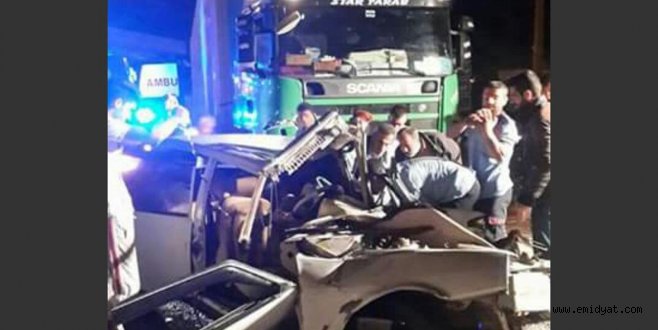 Edinilen bilgilere göre kaza gece 01.30 sıralarında meydana geldi. Midyat-Mardin karayolunun Şenköy Mahallesi Üçyol mevkiinde seyir halinde olan ve sürücüsünün ismi öğrenilemeyen 27 L 0266 plakalı TIR, aniden yola çıkan K.A. (24) idaresindeki 21 FL 577 plakalı otomobile çarparak adeta biçti. Kazada, araçta sıkışan sürücü K.A. ve yanında bulunan A.O.(33) yaralandı.
