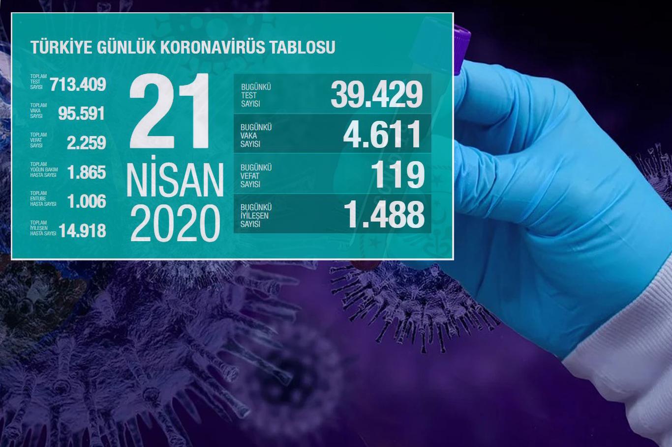 Yapılan testler sonucu 4 bin 611 yeni vakanın tespit edildiği, toplam hasta sayısının ise 95 bin 591 olduğu belirtildi.
